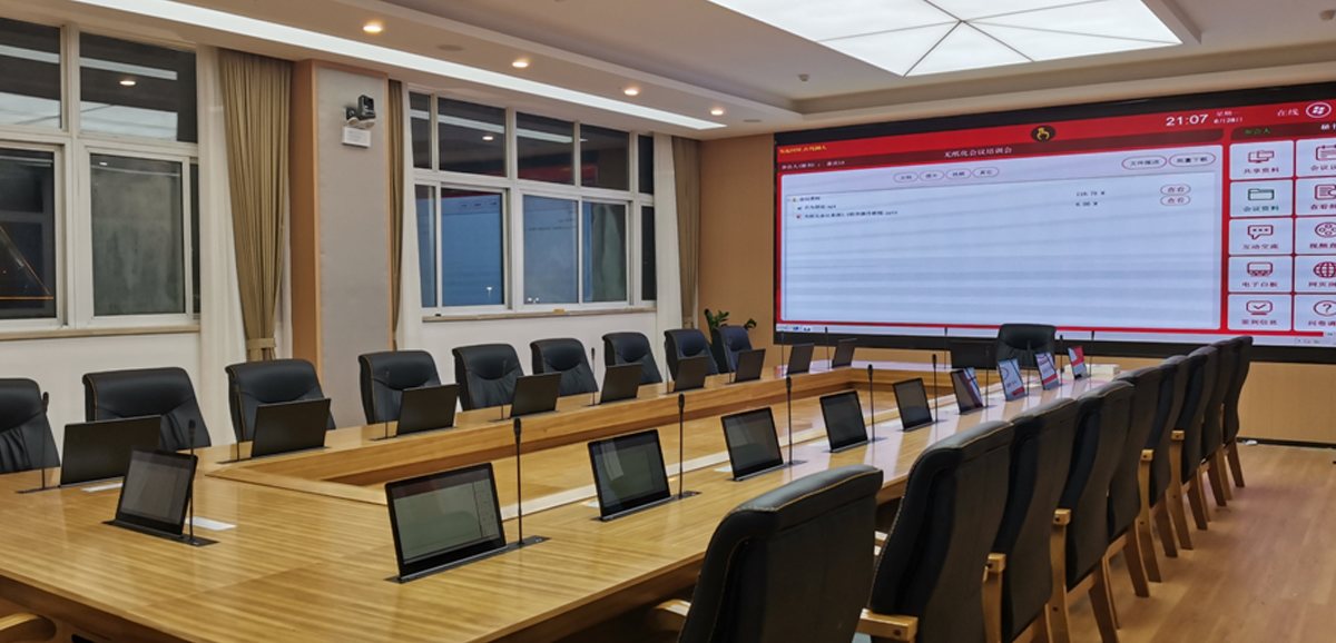 讯维采用最新无纸化会议系统搭配智能会议平板显示系统,实现了无纸化、智能化的双重应用需求。智能会议平板主要应用于政企事单位会议办公和教育培训等领域,集成了投影机、幕布、电子白板、音响、电脑和远程会议终端等多种设备,具备交互式智能白板、互动式文档演示、分屏式远程会议、多终端无线传屏、网络多媒体播放等多种功能。