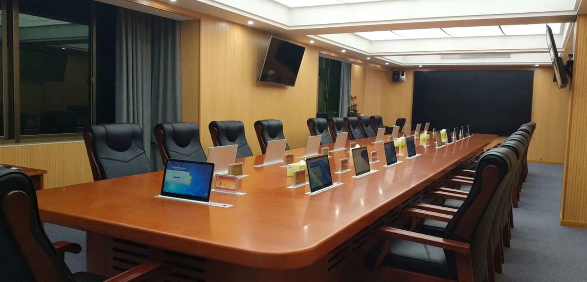 本次案例讯维无纸化系列采用15.6寸高清宽屏设计,完全符合会议现场人体坐姿舒适可视效果。主机高度严格按不遮挡视线角度设计,系统采用嵌入式软件架构,完美实现交互式无纸化强大的会议功能。