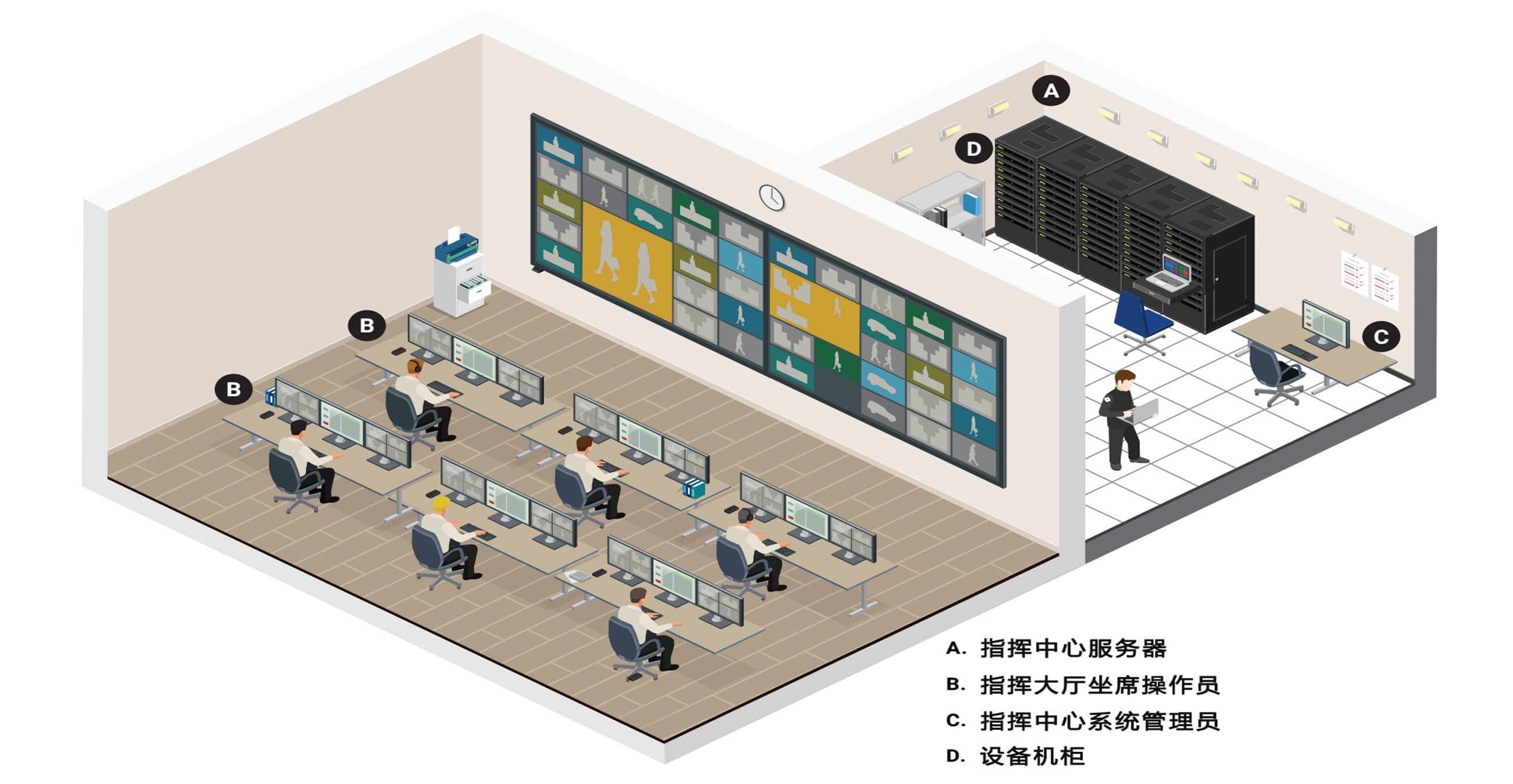 服务器在机房统一管理,操作员只需通过坐席管理系统进行业务操作,确保服务器数据安全,提升工作效率。