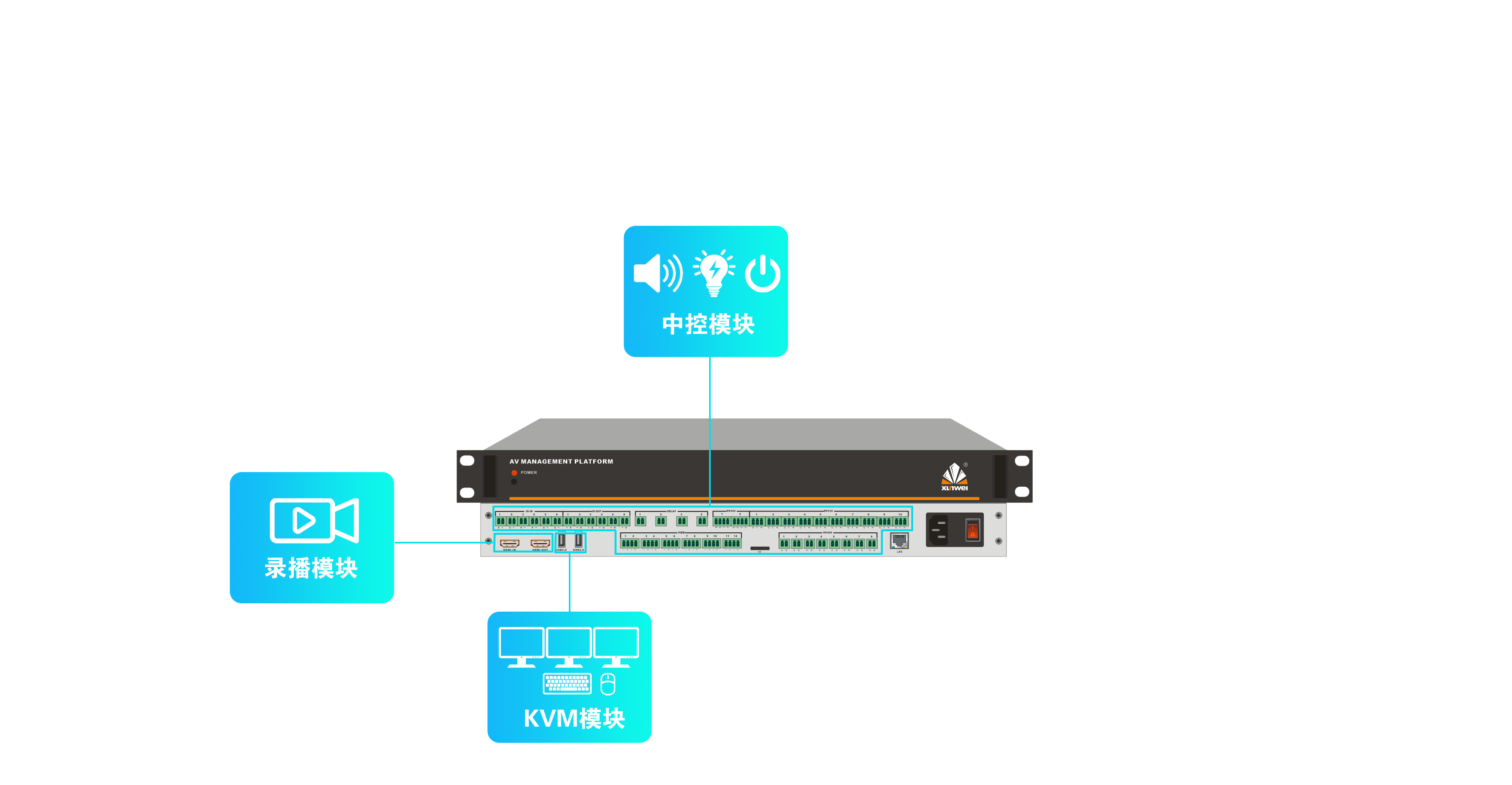 全新融合架构,将中控、录播、KVM功能模块集中于一体的智能可视化解决方案