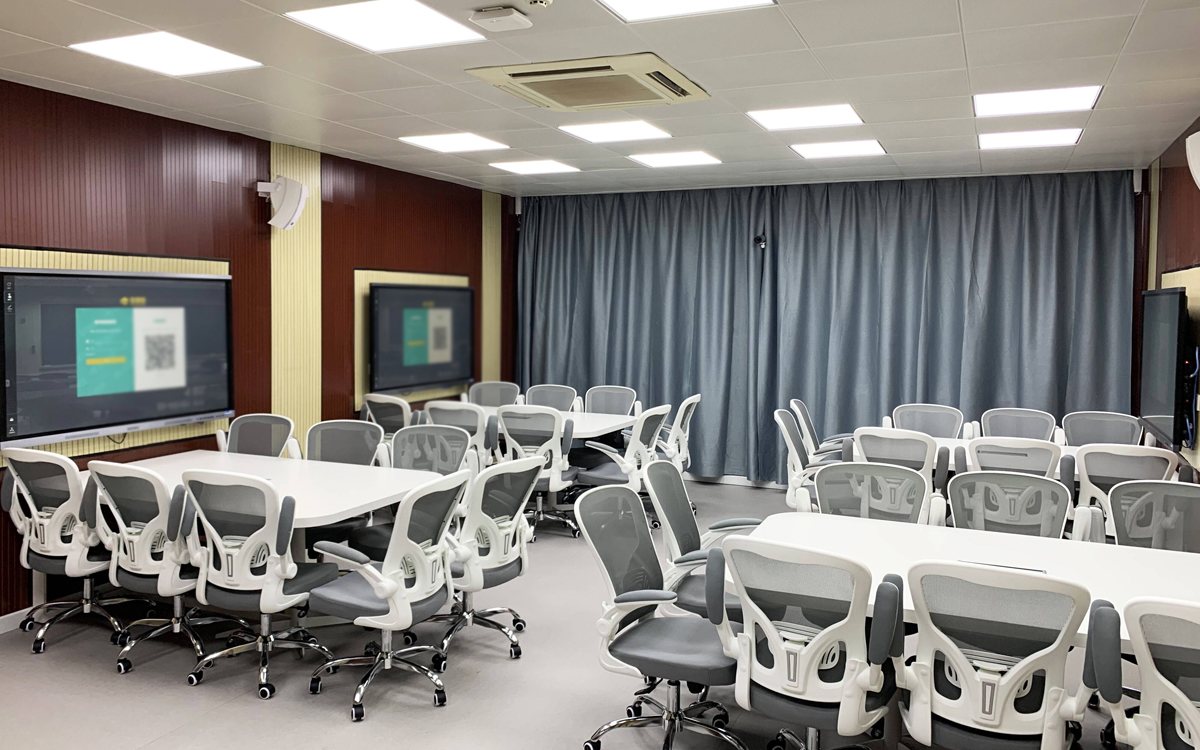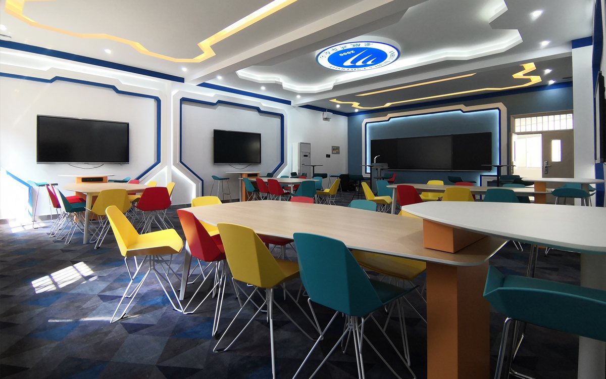 安徽新华学院智慧教室通过将传统教室的排排座固定桌椅改变为可移、可拼的灵动桌椅,将传统教室的多媒体投影仪改变为智能互动黑板,将智慧课堂互动教学软件和功能强大的智能设备控制系统通过分布式系统对接打通,通过重构教学环境,重塑教室内教师的教学行为与学生的学习任务,实现课堂教学"3D"互动。