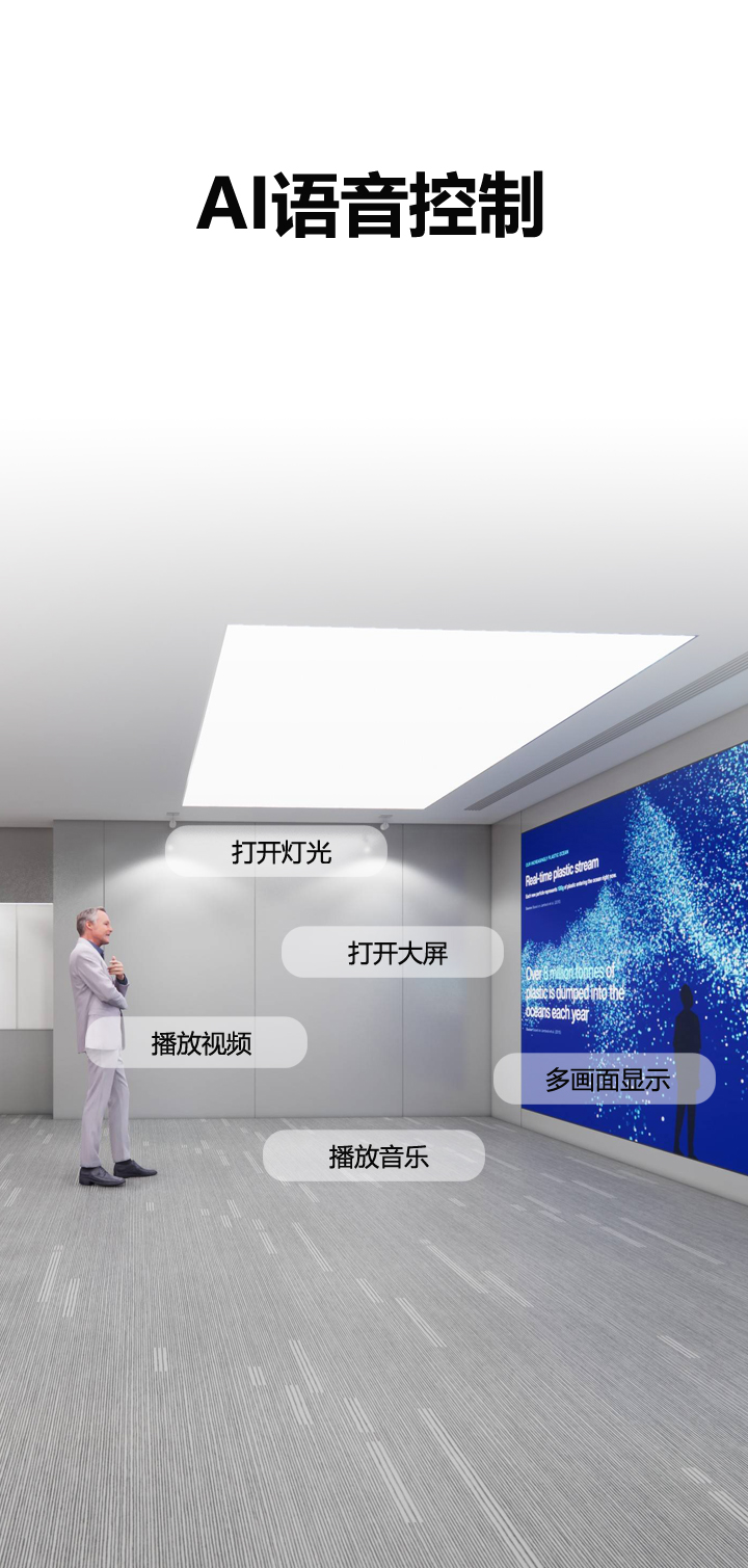 智能场景联动,预设讲解模式等预案,自动调节灯光、音响、互动终端