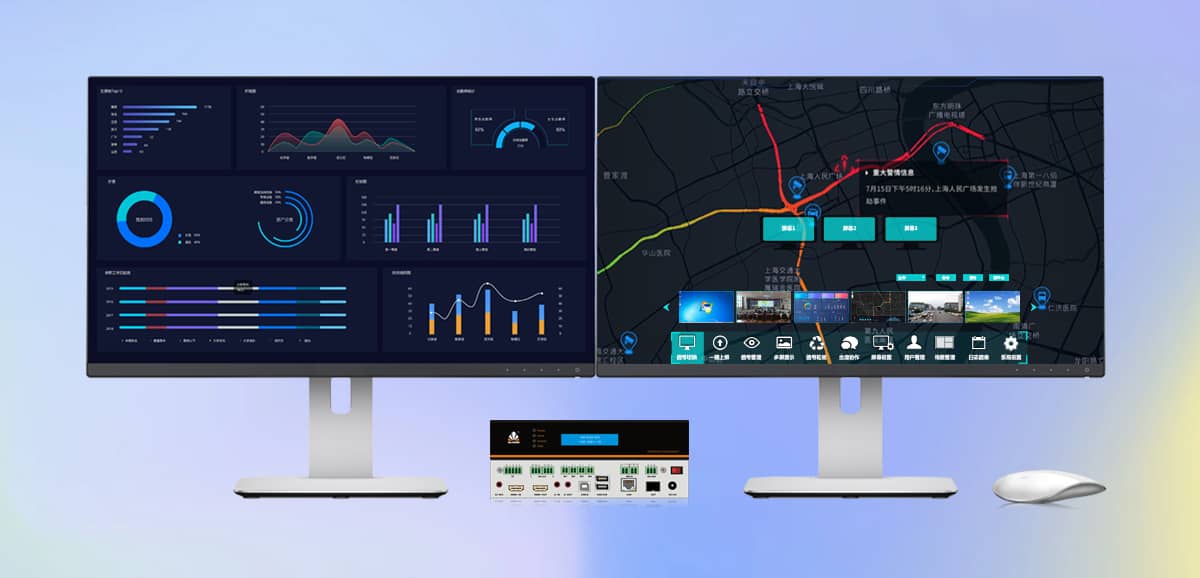 随着经济全球化的大趋势,科技发展越发迅速,社会信息化程度急剧增强。数据记录方式也渐渐现代化,传统的纸张记录方式已不能满足人们生活工作的需求。音频、视频、图表、数据文档等各种各样的新型记录方式已经渗透到人们生活的方方面面。社会上存在的信息数量繁多、复杂多变,使得人们难以辨别。这也导致群众对信息的可视化需求快速增强。无论出于监察需求还是指导需求,无论是指挥调度中心还是监控中心,对使用大屏展示融合数据这一方式的需求日益增加。通过大屏幕系统来展示数据信息已经是社会的潮流,是信息展示中不可缺少的一部分。