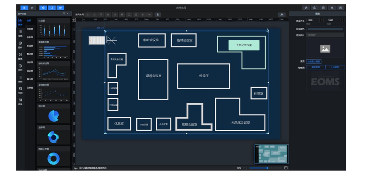 可视化编程设计器允许用户对制作的场景画面进行实时预览来验证场景画面制作的效果和数据质量等。在实时预览中,系统会自动打开鹰眼,用户可以通过鹰眼放大、缩小、移动来查看所有内容。