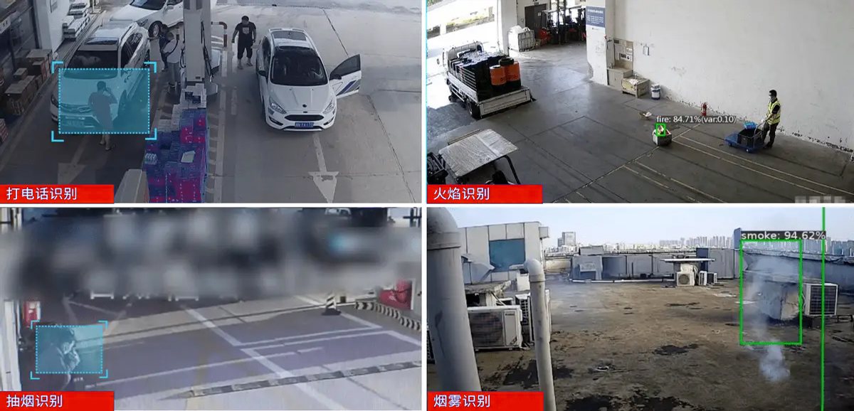 对区域内烟雾或火焰等异常事件进行实时报警和记录,及时发现区域内异常烟雾火焰和火灾苗条,提醒工作人员及时进行扑救,保障加油站安全。
