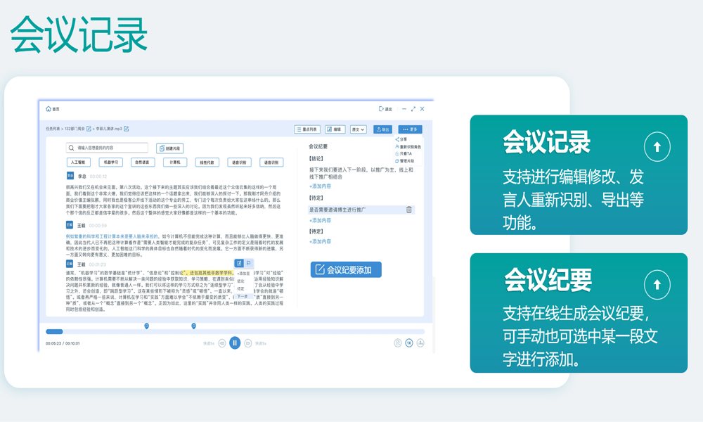 语音转写软件:基于先进的语音识别算法和深度学习技术,实现高精度实时转写,支持标准普通话、英文等多种语言识别,识别准确率高达98.5%以上。