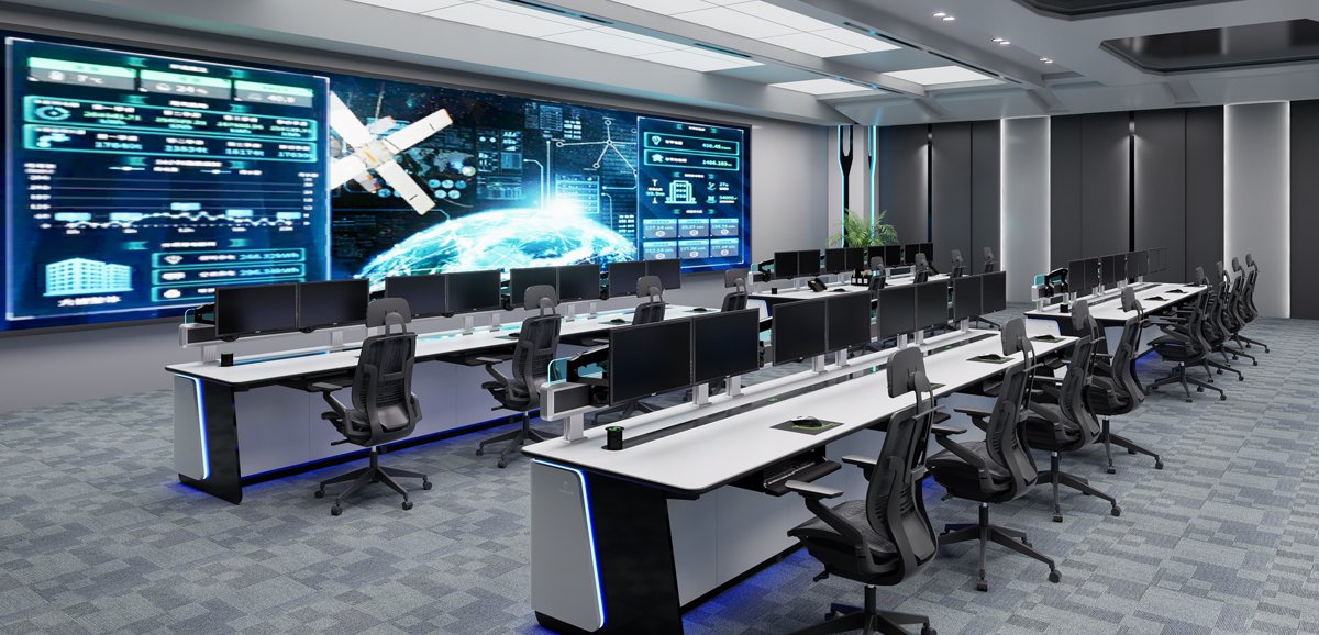 LED 大屏:指挥中心主显示区域采用小间距 LED 显示屏,具备高亮度、高对比度、无缝拼接特性,支持 4K/8K 超高清显示,可整屏展示关键信息或分割成多个画面显示不同内容。