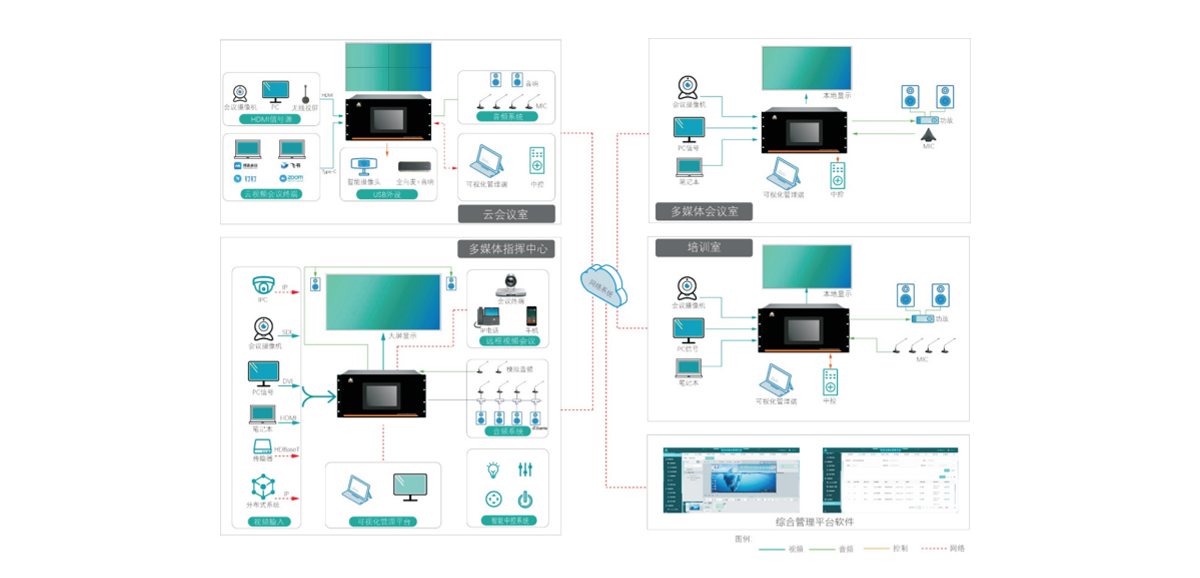 随着数字化转型加速,音视频技术在各行业深度应用,传统音视频分散式管理系统面临多源异构设备接入困难、数据孤岛林立、运维复杂、协作效率低下等挑战,各行业对信息技术的需求逐渐从单一化向集成化、系统化转变。在应急指挥中心、多媒体会议室、移动指挥车、多媒体教室、数字法庭等场景中,用户亟需一套高度集成、智能管控、互联互通的一体化解决方案,以实现音视频信号的综合调度与高效协作。讯维分布式综合管理平台应运而生,基于ALL-IN-ONE设计理念,深度融合音视频矩阵、音频处理、中控系统、信号录播、信号编解码、视频会议、北斗定位、可视化管理、KVM坐席协作等核心功能,通过模块化热插拔架构与可视化统一管理平台,解决多系统兼容性差、操作繁琐、扩展性不足等痛点。平台以智能交互、集中管控、低延迟高可靠为核心优势,覆盖指挥中心、车载应急等严苛场景,为用户提供从信号采集、传输、处理到协同应用的全链路闭环服务,助力行业客户实现资源整合、降本增效与业务创新。