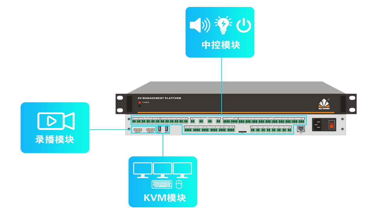 一体化集成设计:将中控、录播、KVM三大功能模块整合于单设备;